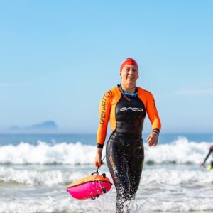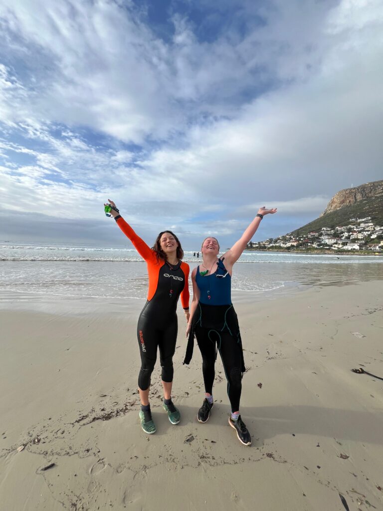 Since then, they’ve raced and swum across the Western Cape, including events like the Simonstown Women’s Day Mile, the Fish Hoek Mile, and the False Bay Express. Their longest swim to date came at the end of 2024 with the Langebaan Express, a demanding 12 km open-water challenge which they completed in 3 hours and 15 minutes.