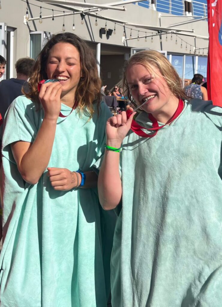 Rebecca and Kirstin first crossed paths in 2021 in the pool at the University of Cape Town Swimming Club, where a shared competitive streak quickly turned into a friendship. Not long after, they found themselves reunited in biology and ecology/conservation classes, bonding over a mutual love for animals, science, the ocean and swimming.As their friendship grew, so did the miles. What began as training sessions evolved into regular competitive and recreational swims, both in the pool and in open water. In 2022, they took on the Robben Island swim together, completing it in 2 hours and 18 minutes, a turning point that cemented their partnership in the water.
